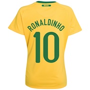 Brazil Home Shirt 2010 - with Ronaldinho 10 printing - Womens