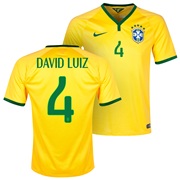 Brazil Home Shirt 2013/15 Yellow with David Luiz 4 printing