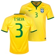 Brazil Home Shirt 2013/15 Yellow with T. Silva 3 printing